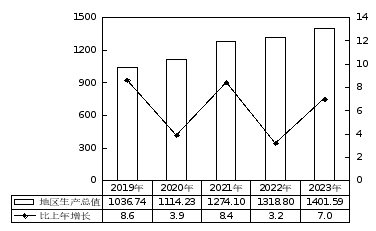 圖1:2019-2023年地區生產總值及其增長速度