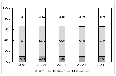 圖2:2019-2023年三次產業增加值占地區生產總值比重