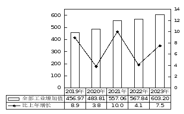 圖4:2019-2023年工業增加值及其增長速度