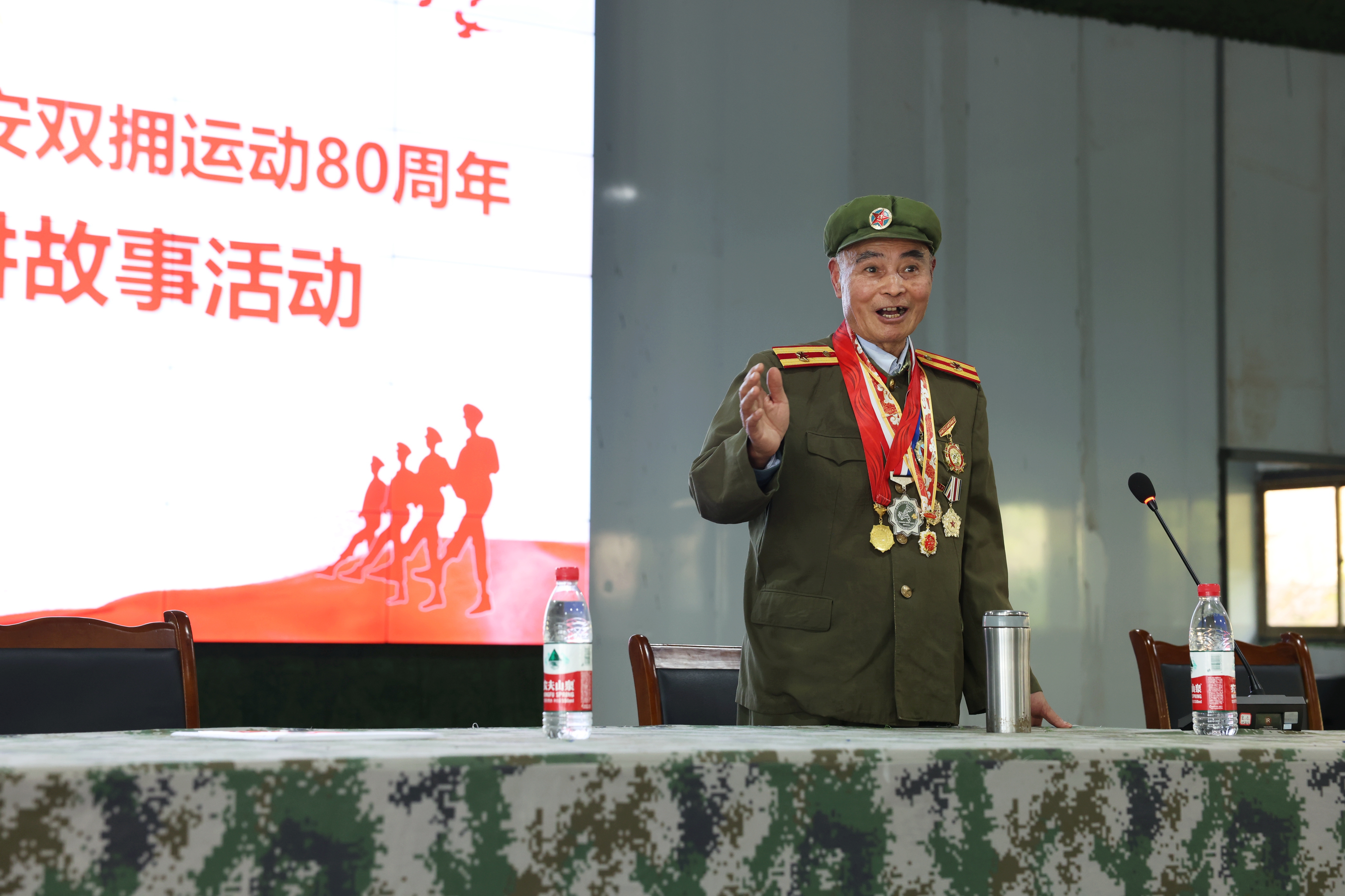 3月14日,在第八次創(chuàng)建全國雙擁模范城之際,區(qū)雙擁辦組織開展紀念延安雙擁運動80周年系列活動。活動邀請一等功臣戰(zhàn)斗英雄楊若泉到中山鎮(zhèn)獵人拓展訓(xùn)練基地,為即將奔赴部隊的300余名準新兵講戰(zhàn)斗故事。楊若泉老戰(zhàn)士講述了他從軍立功的故事并展示了他珍藏已久的肩章和立功勛章,為準新兵們上了一堂生動的愛國主義和革命英雄主義教育課。大家紛紛表示,將以英雄為榜樣,擔(dān)負起保家衛(wèi)國神圣使命。