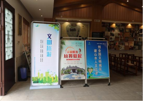 陳獨(dú)秀舊居陳列館廣場綠織如蔭,鮮花錦簇,分類垃圾桶有序放置在林蔭道角落,館內(nèi)干凈整潔、秩序井然。游客進(jìn)入景區(qū)在醒目位置看到的是“場所碼”二維碼和提供“健康碼、行程碼”和測體溫、戴口罩溫馨提示;景區(qū)內(nèi),隨處可見導(dǎo)游導(dǎo)覽的標(biāo)識標(biāo)牌和文明旅游溫馨提示牌;景區(qū)還通過開展宣傳引導(dǎo)、秩序維護(hù)、文明告知、文明規(guī)勸等形式,宣傳文明參觀、禮讓排隊(duì)、有序停車、垃圾入桶等文明旅游行為,倡導(dǎo)游客文明出游,營造文明氛圍,打造和諧文明的旅游環(huán)境。