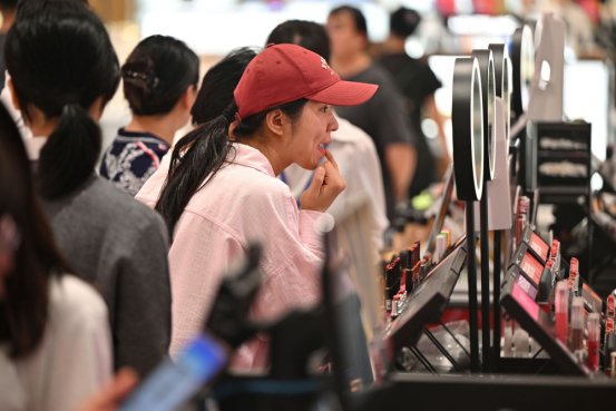 ??2026年2月16日,顧客在海南海口日月廣場免稅店選購美妝產品。
