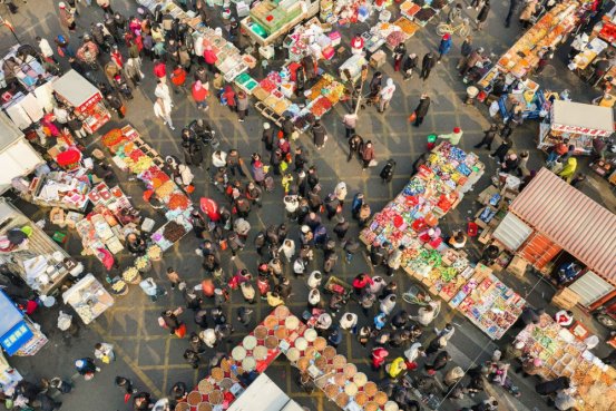 ??2026年2月10日,位于天津寧河區橋北街道的蘆臺大集吸引了眾多采購年貨的顧客(無人機照片)。