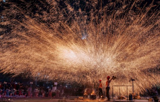 ??2026年2月19日在四川巴中市體育館廣場拍攝的打鐵花表演現場。春節前夕,文化和旅游部啟動2026年全國春節文化和旅游消費月,各地相應推出豐富的應季文旅產品,舉辦約3萬場次文旅消費活動,發放超3.6億元消費券等消費補貼,為大眾文旅慶新春提供更多場景。