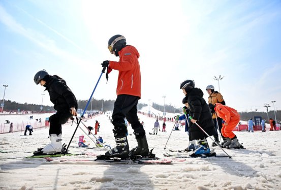 ??2026年2月13日,游客在青島西海岸新區融創藏馬山滑雪場學習滑雪。